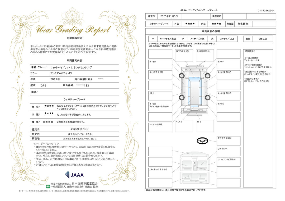 | 走行距離 | 10.4万km | 修復歴 | なし |