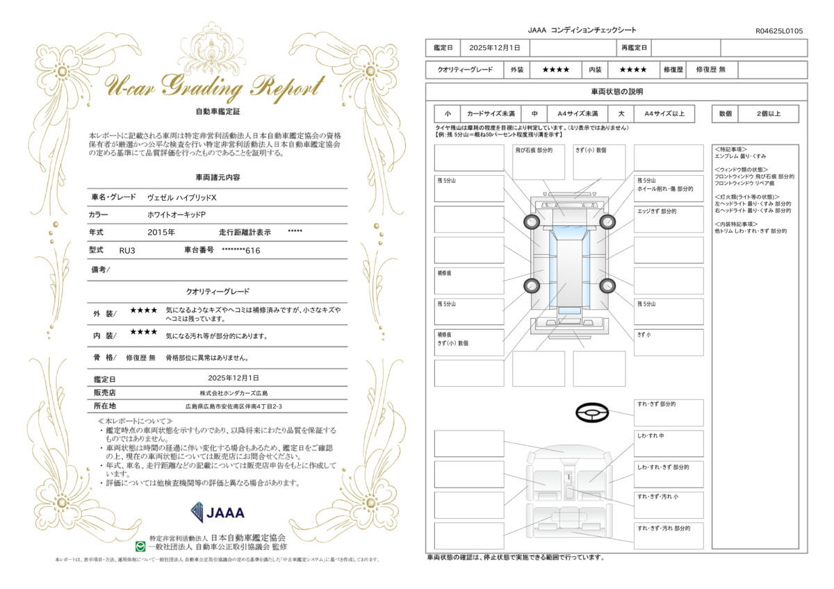 | 走行距離 | 8.5万km | 修復歴 | なし |
