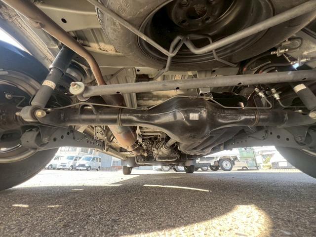 【リア下回り】リア部の骨格に損傷・修理・交換跡がないか、ライトを使用して入念に確認します。合わせて、下回りのサビ・突き上げ等の見えない辛い部分の確認もします。