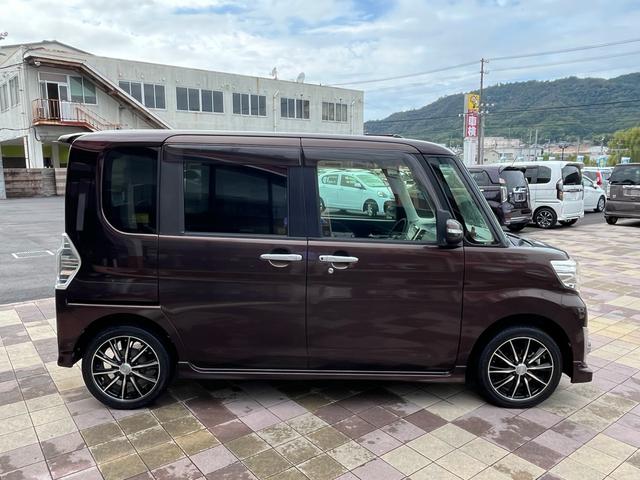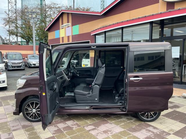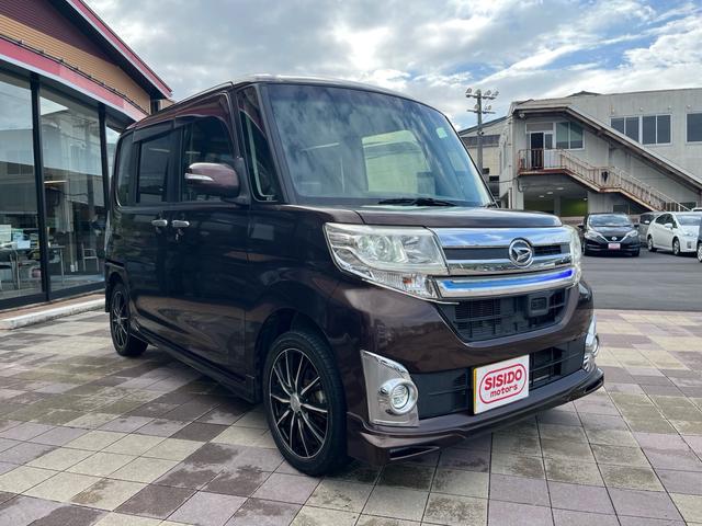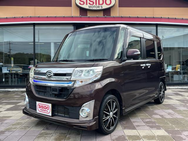 ダイハツ タントカスタムX トップエディションSA 軽減ブレーキ 純正8インチナビ 地デジ Bluetooh バックモニター 両側パワースライドドア ETC スマートキー LEDライト フォグランプ 社外アルミ ハーフレザーシート 横滑り防止 禁煙車