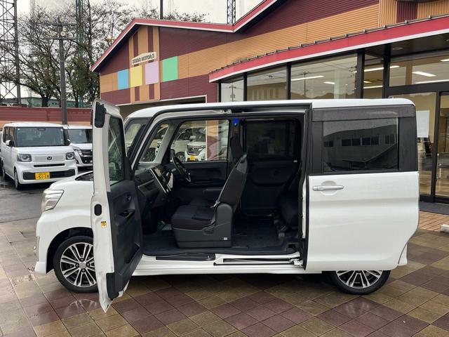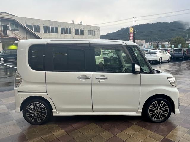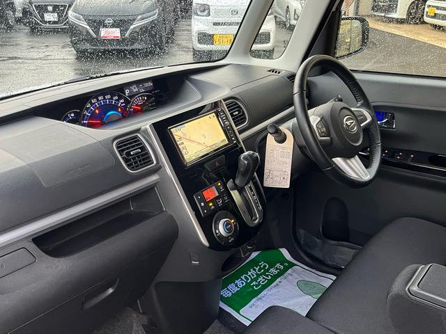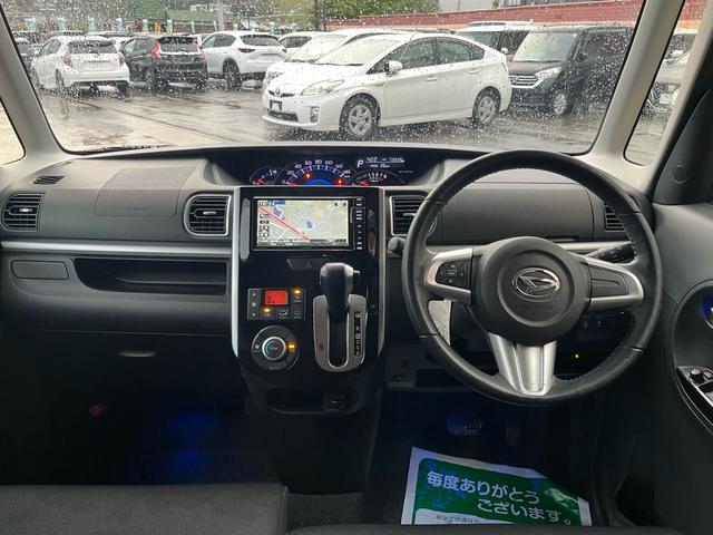ダイハツ タントカスタムRS SA 軽減ブレーキ 社外ナビ 地デジ Bluetooh バックモニター スマートキー 両側パワースライドドア LEDライト フォグランプ 格納ミラー ETC アイドリングストップ 純正アルミ ABS 禁煙車