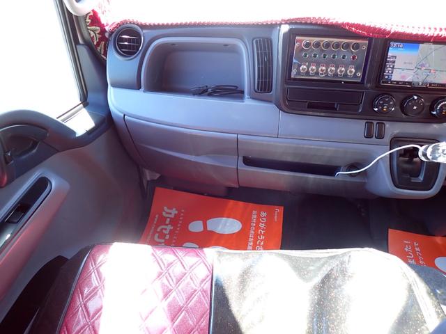 三菱ふそう キャンター メッキパーツ装飾 アルミ鋼板 フロントバンパー可動式 メッキホイールライナー サイドバンパーステンレス リアフェンダーステンレス アルパインナビ・バックカメラ連動 フロント・サイド・テールマーカランプ