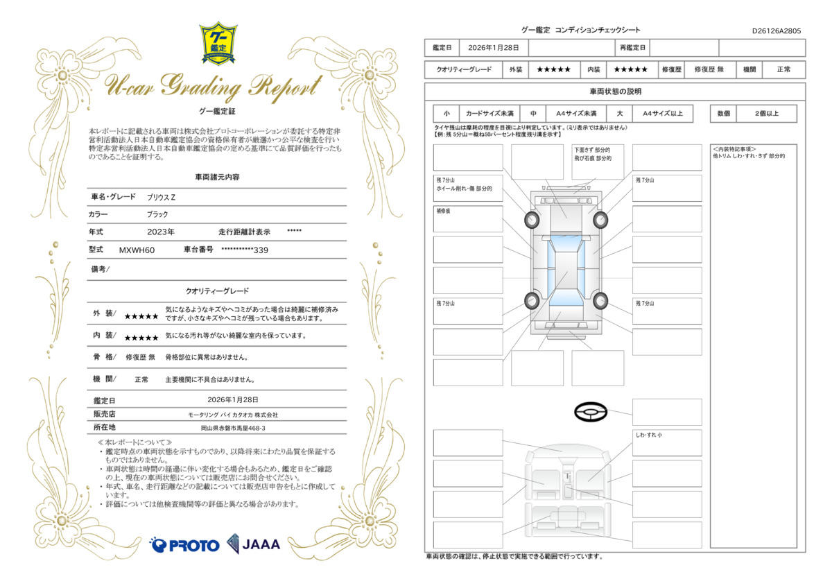 全車第三者鑑定を実施し、情報開示をしております!車の品質に自信があるからこそできる全車実施です!