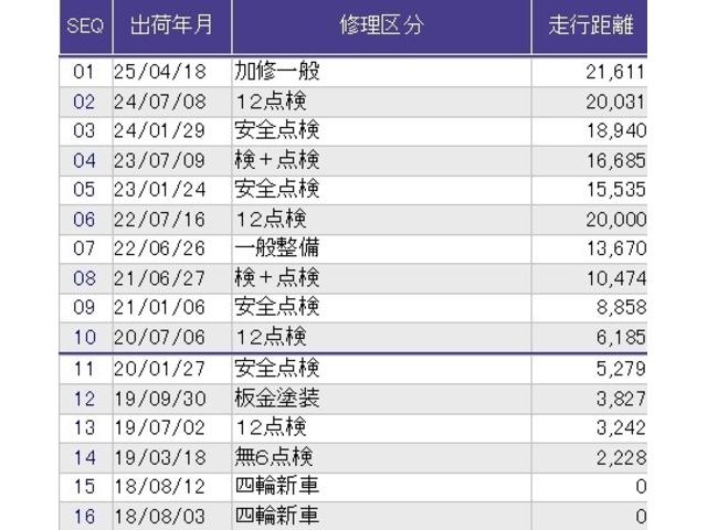 こちらの車両の整備歴になります。詳しくはスタッフにお尋ねください。