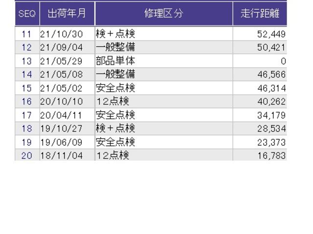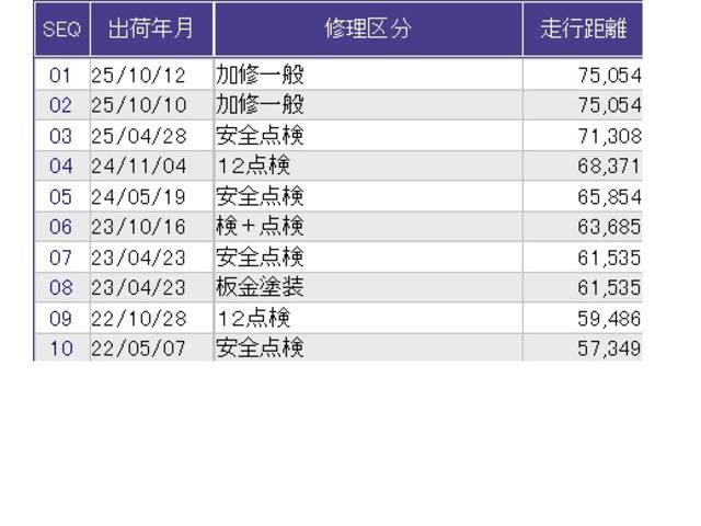 こちらの車両の整備歴になります。詳しくはスタッフにお尋ねください。