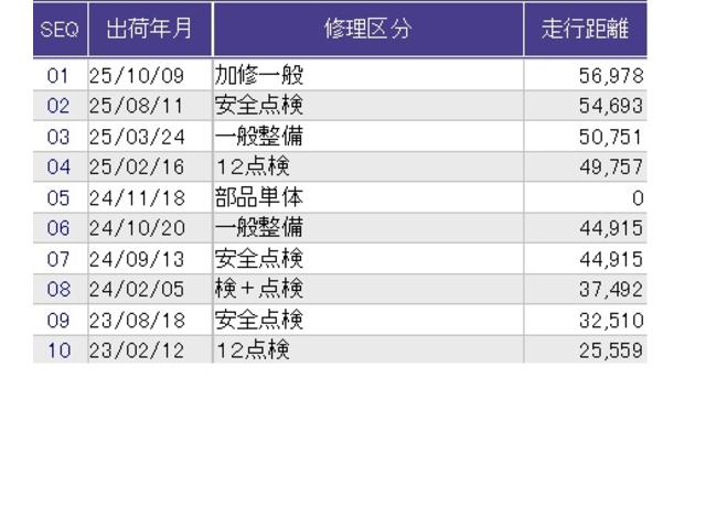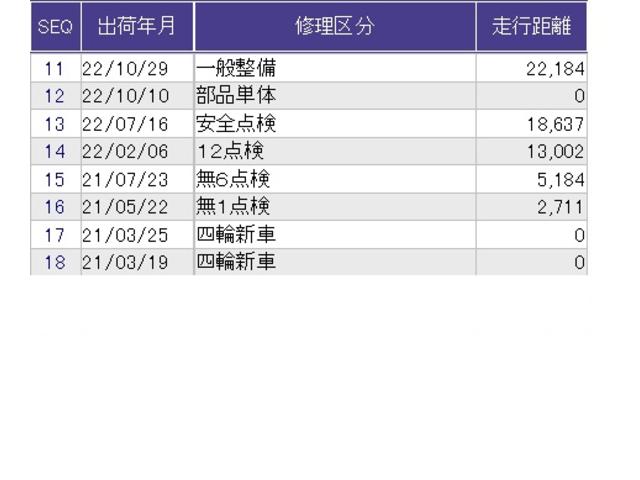 こちらの車両の整備歴になります。詳しくはスタッフにお尋ねください。