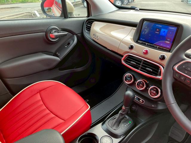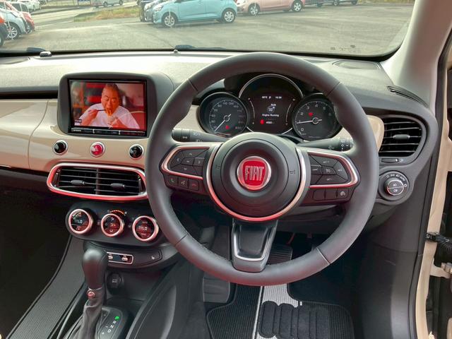 フィアット 500Xベースグレード 1.3T ワンオーナー 8型ナビTV CD DVD BT バックカメラ ETC 純正17AW レッドレザー調シートカバー LEDライト フォグ ミラーウィンカー クルーズコントロール