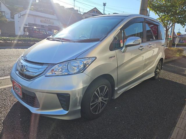 ホンダ フリードハイブリッドジャストセレクション ETC オートクルーズコントロール 両側スライド・片側電動 HID 電動格納ミラー 3列シート CVT アルミホイール 盗難防止システム ABS ESC エアコン パワーステアリング パワーウィンドウ
