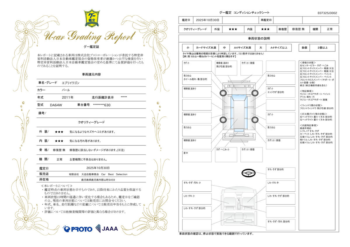 | 走行距離 | 11.6万km | 修復歴 | なし |