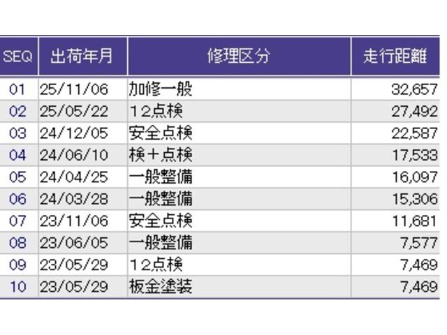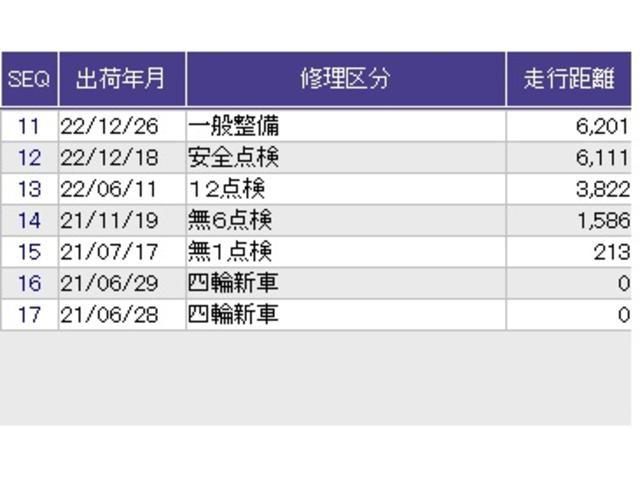 こちらの車両の整備歴になります。詳しくはスタッフにお尋ねください。