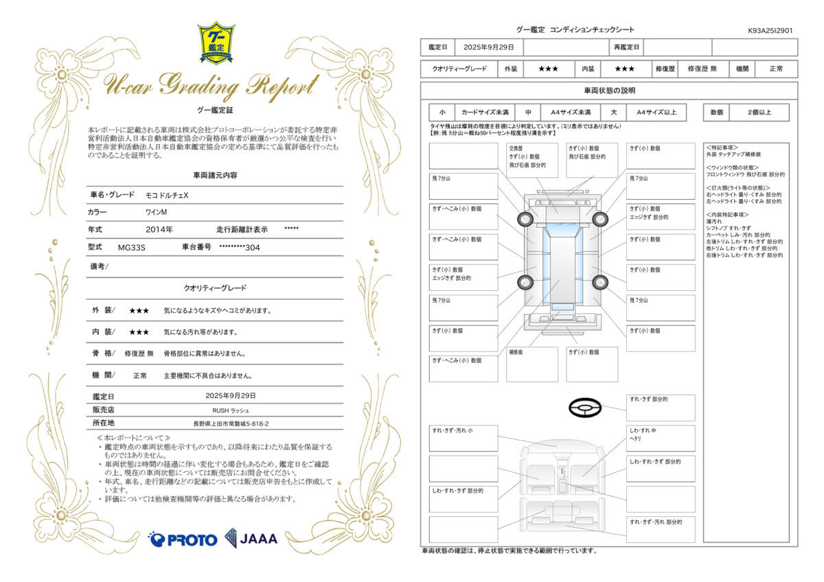 | 走行距離 | 2.7万km | 修復歴 | なし |