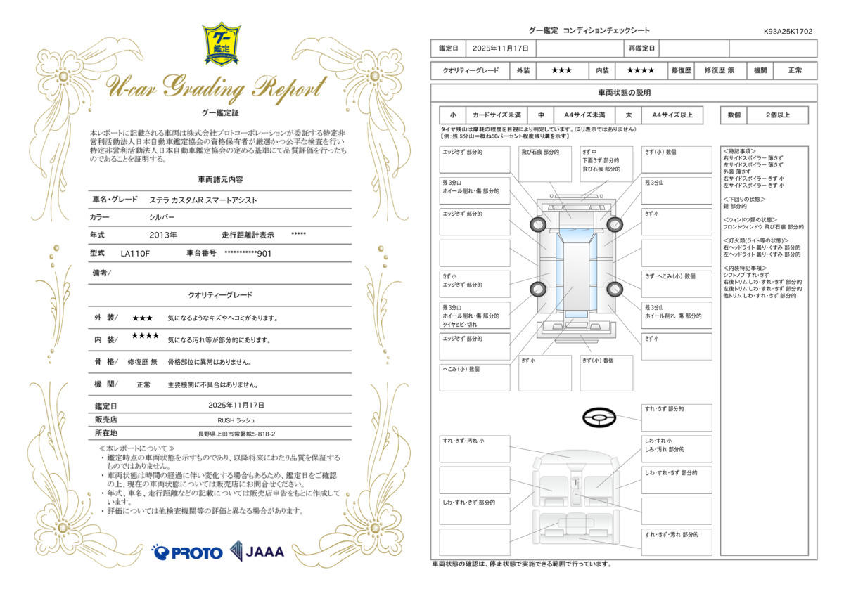 お客様にお車の状態をわかりやすくご説明しております!全車コンディションノート提示中です!