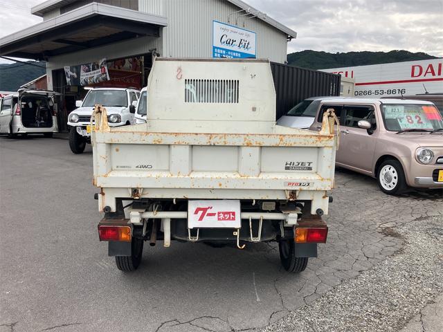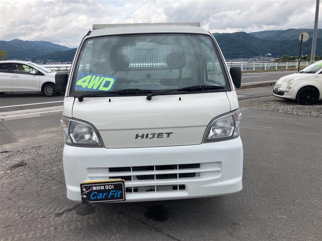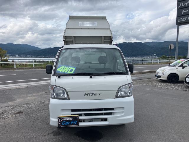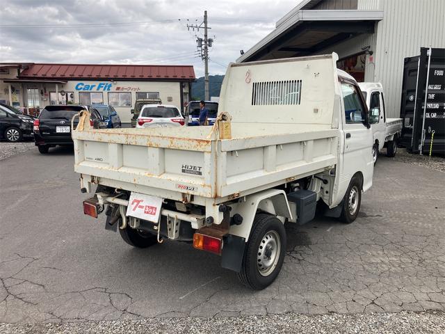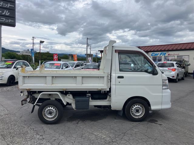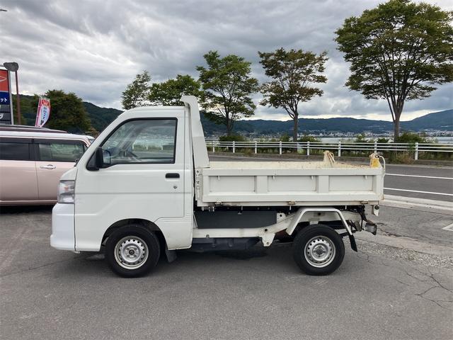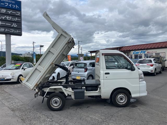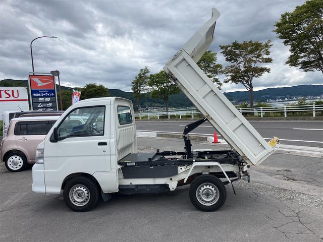 ダイハツ ハイゼットトラック多目的ダンプ 4WD 5速マニュアル エアコン パワーステアリング 三方開 FM/AMラジオ ライトレベライザー シガーライター ドアバイザー 車検令和9年1月まで ホワイト