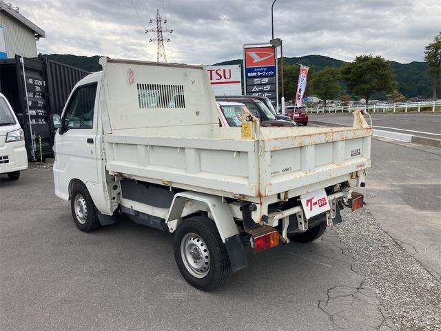多目的ダンプ 4WD 5速マニュアル エアコン パワーステアリング 三方開 FM/AMラジオ ライトレベライザー シガーライター ドアバイザー 車検令和9年1月まで ホワイト