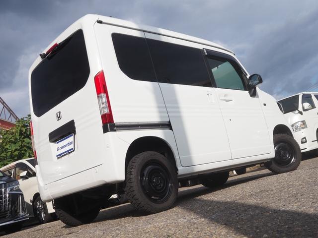 ホンダ N-VANL 4WD AT リフトアップ ホンダセンシング バックカメラ 2025年製タイヤ エクストリームJスチールホイール スモークフィルム ブラックドアミラー 社外ディスプレイオーディオ クリアランスソナー