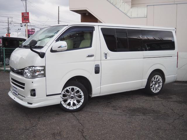 トヨタ ハイエースバンロングスーパーGL DT 4WD 2型 フロントバッドフェイス タイミングベルト交換済 モデリスタフロントエアロ 社外ヘッドライト マフラーカッター 社外18インチAW AC100V100W 社外サイドミラー ETC