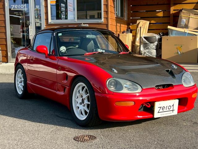 スズキ カプチーノベースグレード ベース ファイターエンジニアリングEG・HT07タービン・eマネージECU・モンスタースポーツエキマニ・中間・カーボンボンネット・ARCラジエター・アラゴスタ車高調・大容量インジェクター・スパルコフル