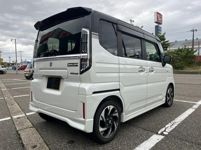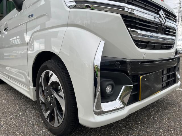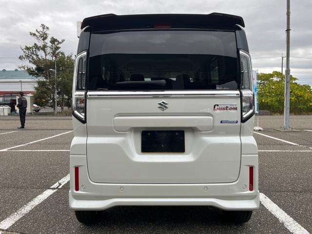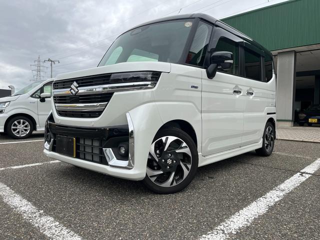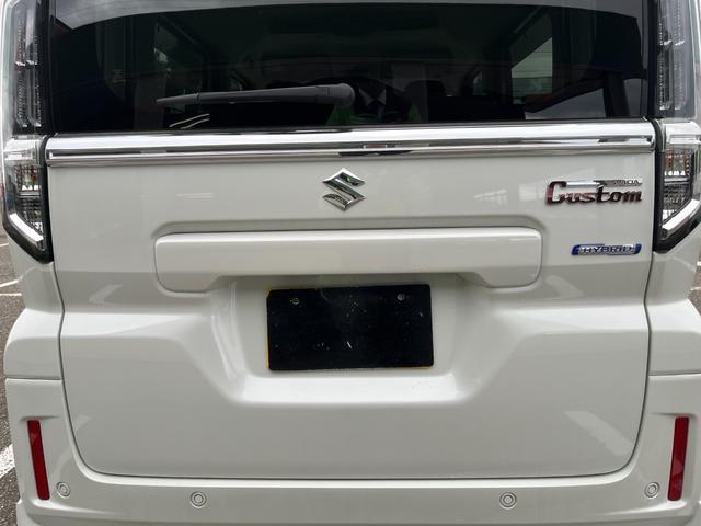スズキ スペーシアカスタムハイブリッドXS 試乗車UP スズキセーフティサポート 両側電動スライドドア フロアマット バイザー付 マルチユースフラップ 電動パーキング ブレーキホールド ヘッドアップディスプレイ ステアリングヒーター LEDヘッドライト 純正アルミ スマートキー