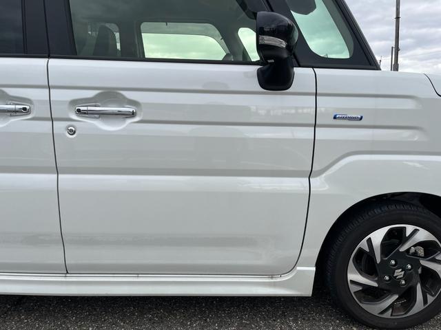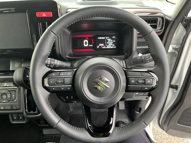 ハイブリッドXS 試乗車UP スズキセーフティサポート 両側電動スライドドア フロアマット バイザー付 マルチユースフラップ 電動パーキング ブレーキホールド ヘッドアップディスプレイ ステアリングヒーター LEDヘッドライト 純正アルミ スマートキー