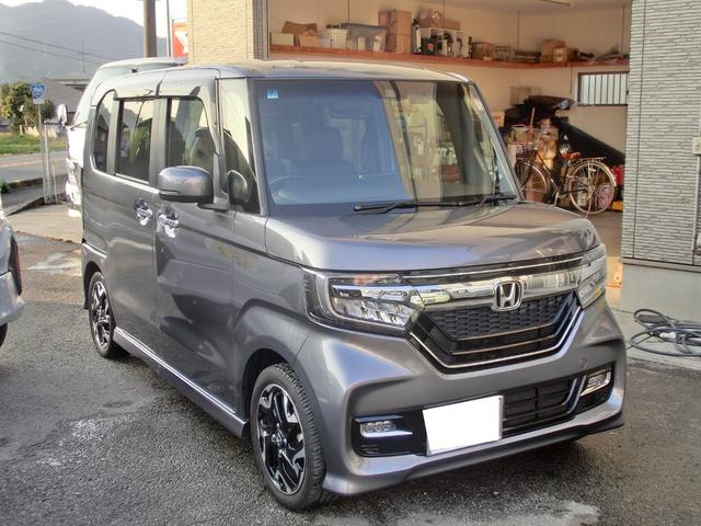 ホンダ N-BOXカスタムG・Lターボホンダセンシング KenwoodナビフルセグTVBiuetooth 連動ドライブレコーダー前後 バックカメラ 両側パワースライドドア ステアリングスイッチ パドルシフトハーフレザー調シート 車検R9年7月28日