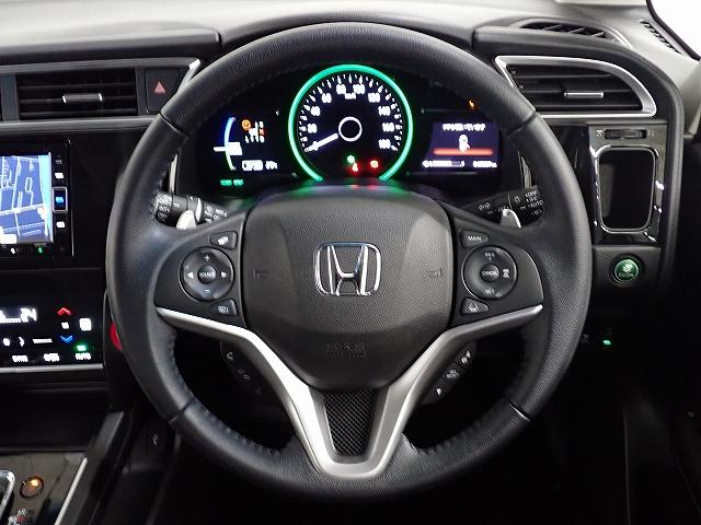 ハンドル左側にはオーディオ操作が出来るオーディオリモートコントロールスイッチ、右側にはHondaSENSINGとオートクルーズコントロールのスイッチを装備!