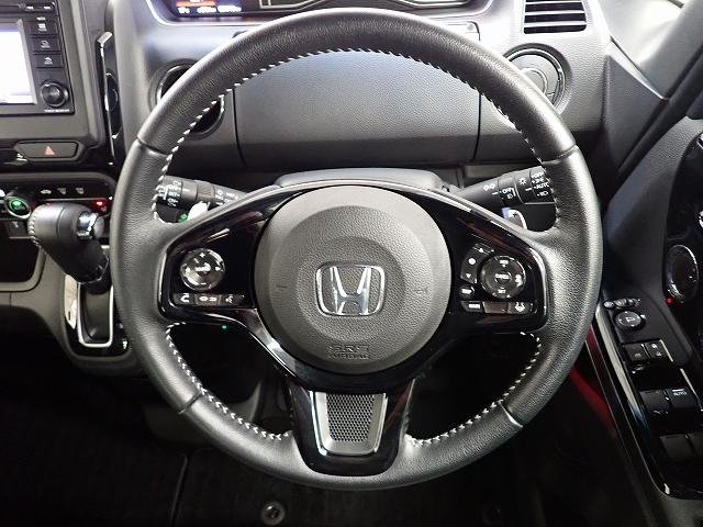ハンドル左側にはオーディオ操作が出来るオーディオリモートコントロールスイッチ、右側にはHondaSENSINGとオートクルーズコントロールのスイッチを装備!