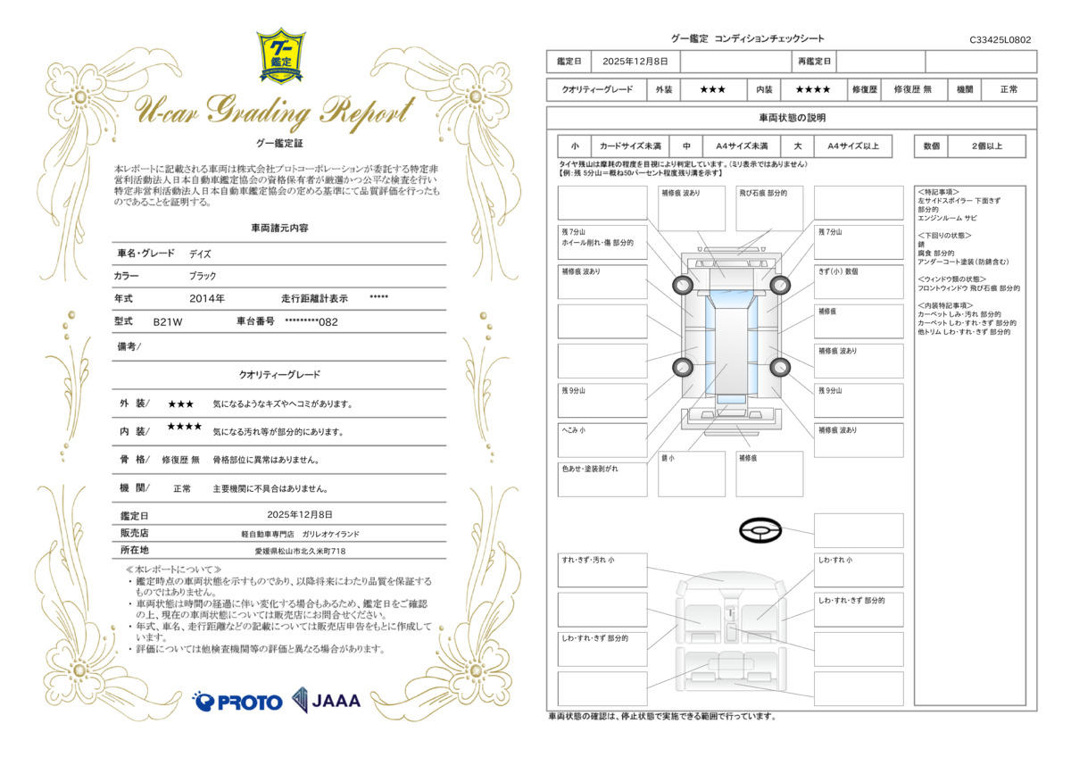 | 車台番号下3桁 | 082 | 全体のサイズ | - / - / - |