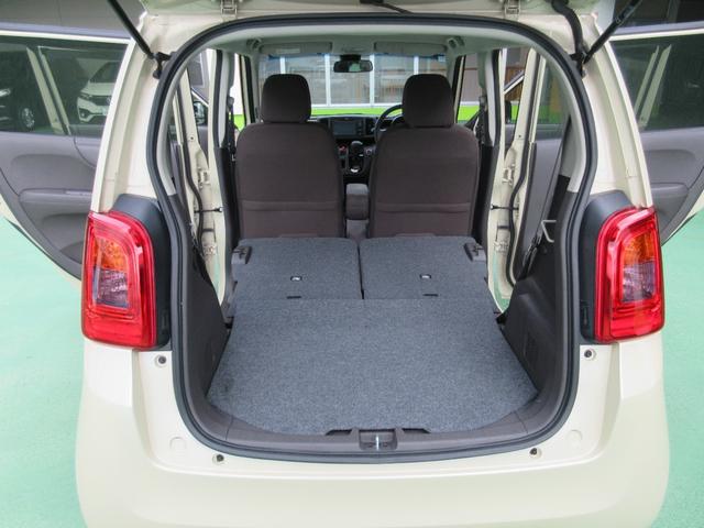 床面がフラットです。後席の座面をはねあげれば、横から摘みやすいもうひとつの荷室として使えます。背の高い荷物もOK!ラゲッジルームも同時に使え、積み分けにも便利。左右片側だけのアレンジもできますよ。