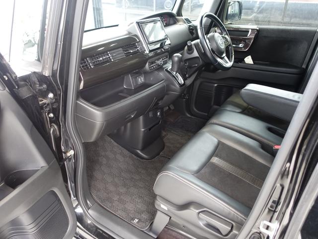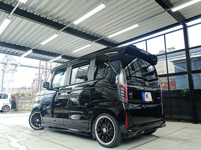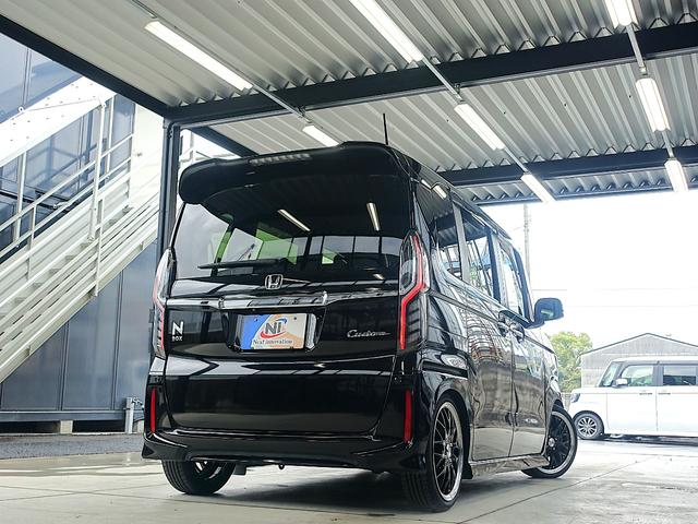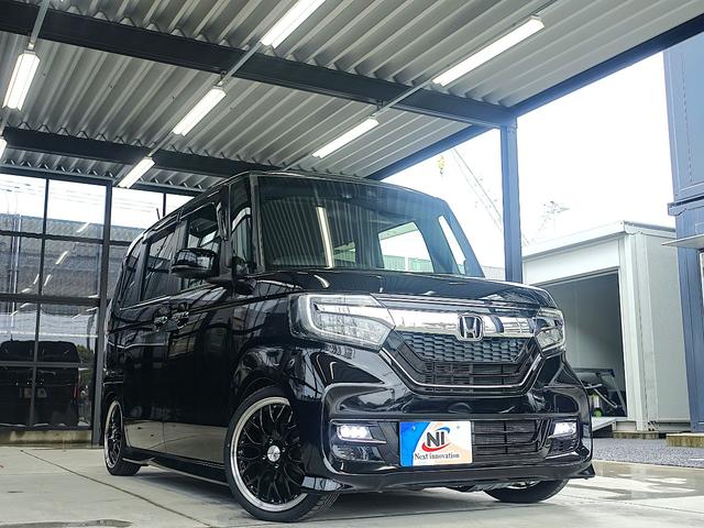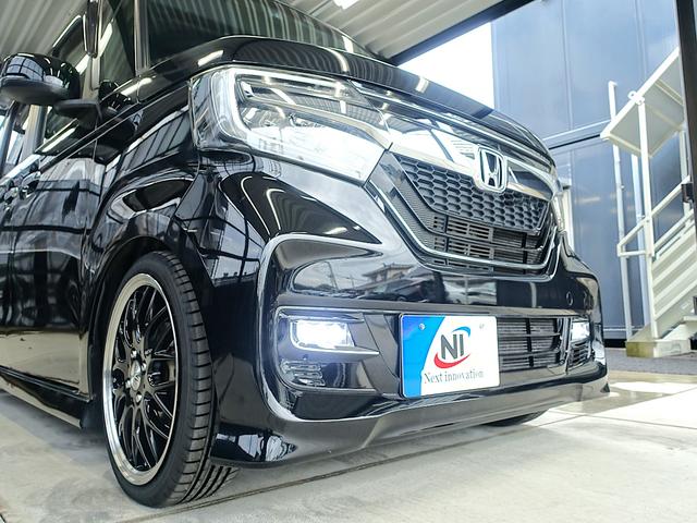 ホンダ N-BOXカスタムG・Lターボホンダセンシング 新品テイン車高調・新品16AW・新品タイヤ・ハーフレザー・LEDフォグ・LEDヘッドランプ・両側パワスラ・ECLIPSEナビ・ブルートゥース・フルセグ・ETC・ドラレコ・パドルシフト・リアサンシェード