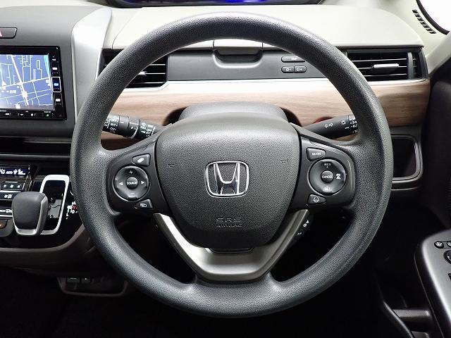 ハンドル左側にはオーディオ操作が出来るオーディオリモートコントロールスイッチ、右側にはHondaSENSINGとオートクルーズコントロールのスイッチを装備!