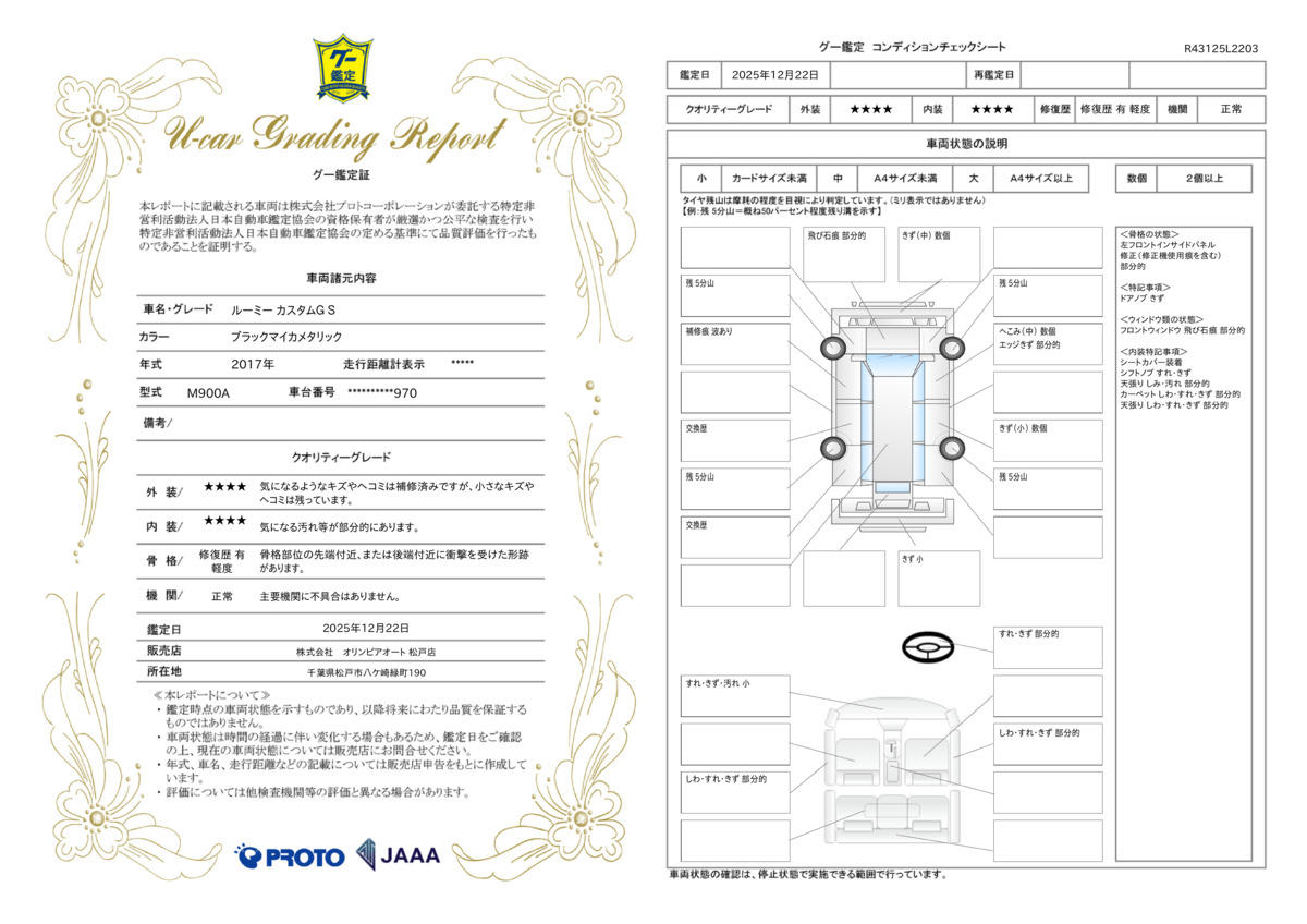 | 車台番号下3桁 | 970 | 全体のサイズ | - / - / - |