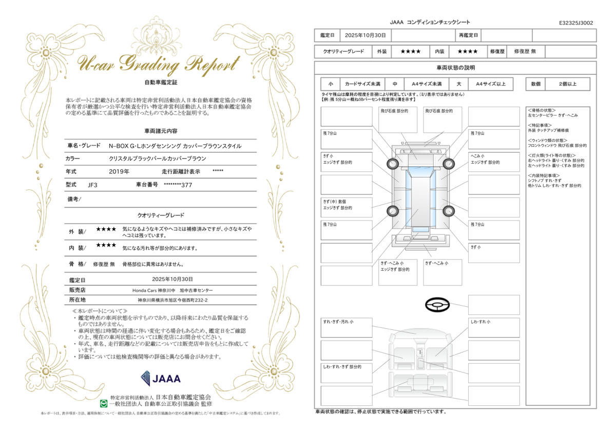 購入時には必ず現車・鑑定証およびコンディションチェックシート(車両状態票)を取り扱い販売店にて確認をし納得の上ご購入をお願いします。