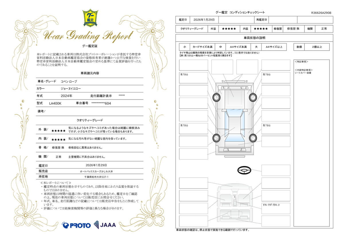 | 走行距離 | 0.7万km | 修復歴 | なし |