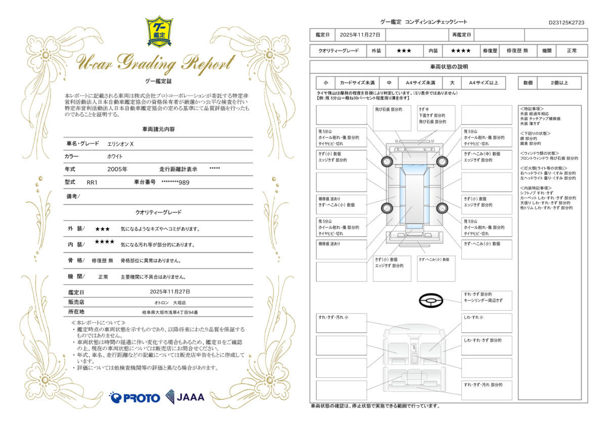 | 走行距離 | 7.5万km | 修復歴 | なし |