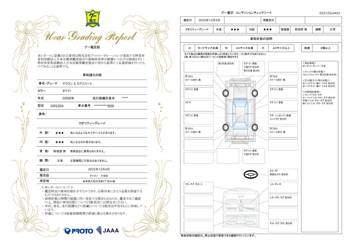 | 走行距離 | 10.4万km | 修復歴 | なし |