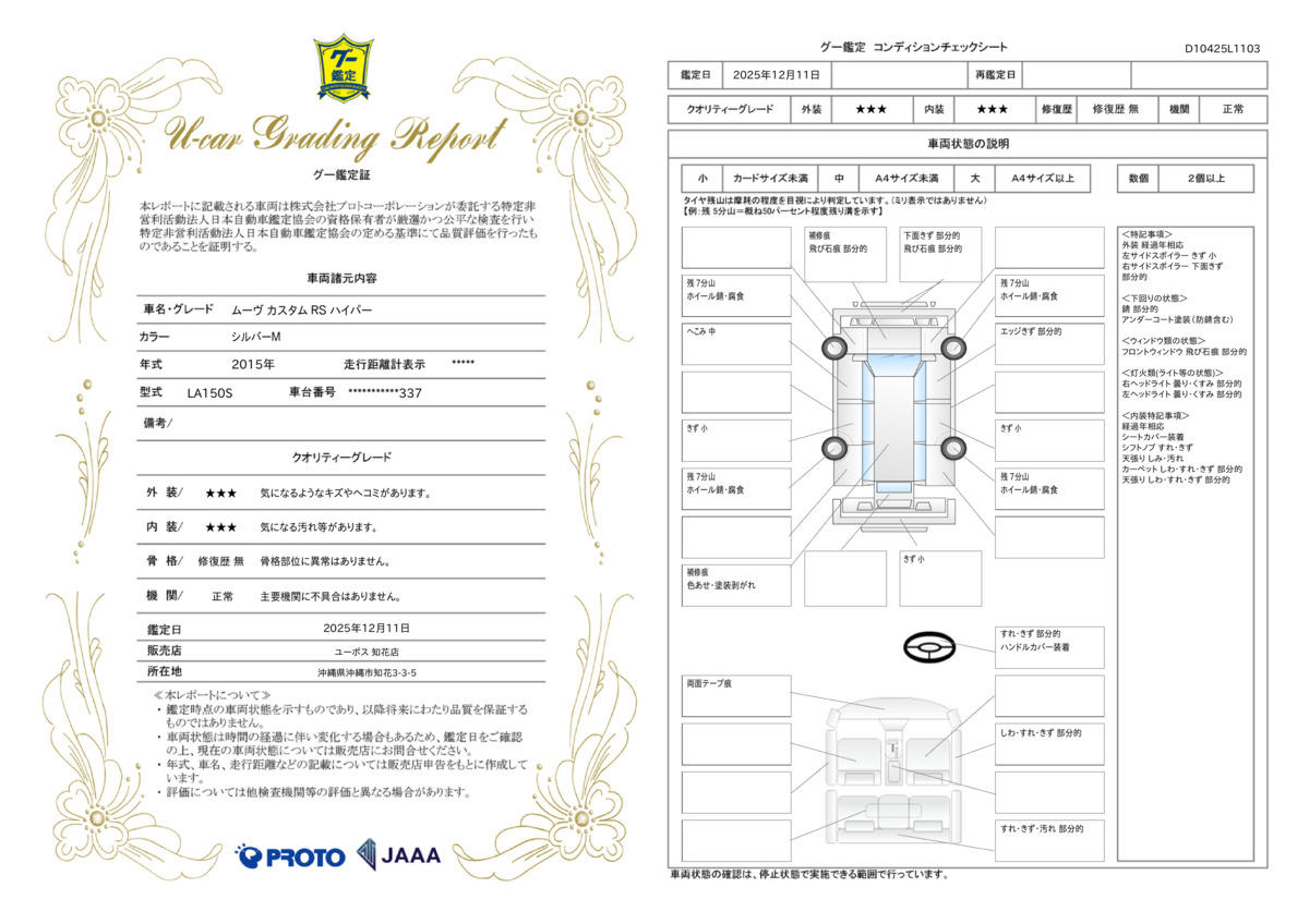 | 走行距離 | 8.0万km | 修復歴 | なし |