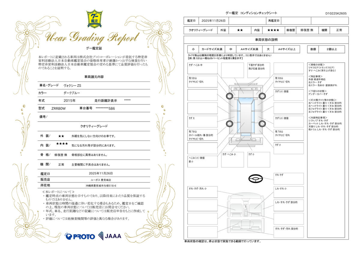 | 走行距離 | 11.7万km | 修復歴 | なし |