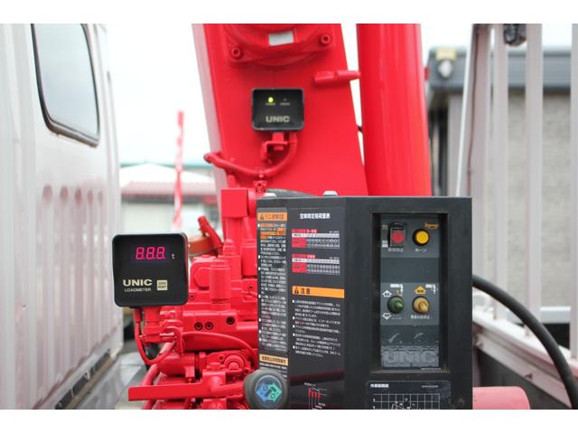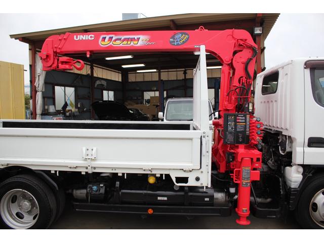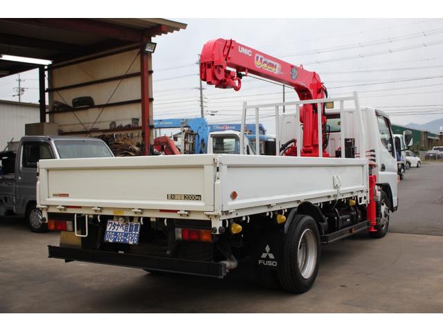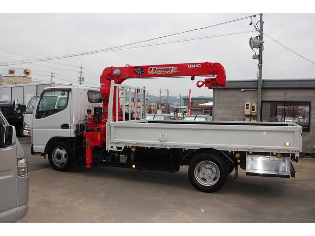 三菱ふそう キャンターロング 2t 標準幅 ユニック URU293 2.9t吊り3段クレーン ラジコン 差し違いアウトリガー 荷台351X180 床フック8対 作業灯 路肩灯 サイドマーカ 三方開 平ボディー ワンオーナ キーレス