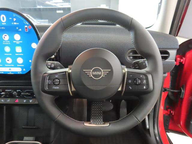 ハンドル:中央にはMINIのエンブレムが付いています。