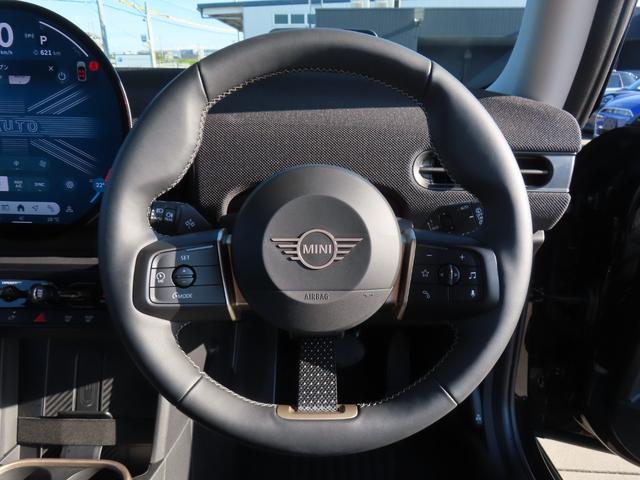 ハンドル:中央にはMINIのエンブレムが付いています。