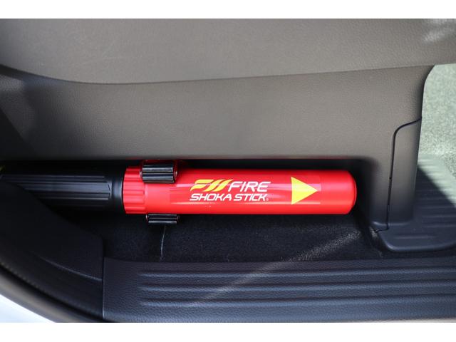 ファイヤーショーカスティック搭載。 ※一般的な消火器のような粉末、液体、泡等の薬剤を使用せず、新技術の不活性ガスで消火します。消火後の残留物がなく汚れないため、躊躇なく使用でき、復旧も容易です。