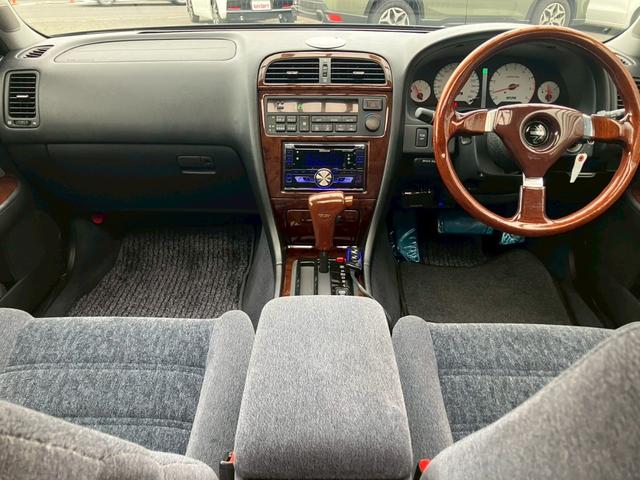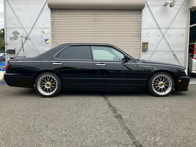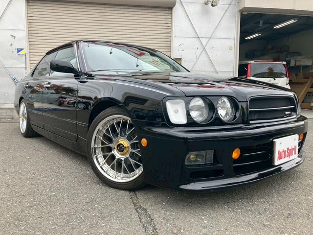 日産 グロリアグランツーリスモアルティマスーパーハイキャス 電動スーパーハイキャス Bluetooth接続 Stich18inAW(当時物) NISMOメーター(1,138km時) 運/助パワーシート アイライン KENWOODサブウーファー