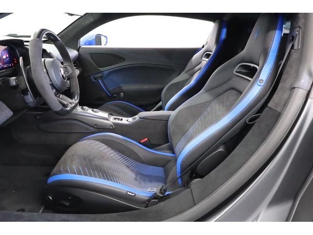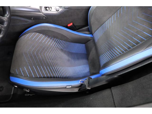 助手席もスポーティな形状ながら過度な締め付けがなく、長距離でも快適に過ごせる設計。ブルー×ブラックのハーフレザーが特別感を高め、同乗者にも満足度の高い空間を提供します。
