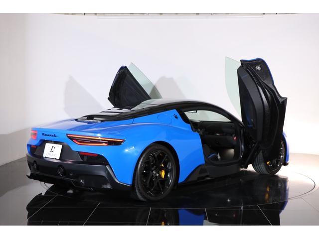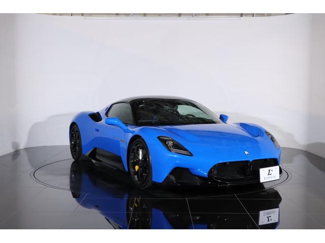 マセラティ MC20ベースグレード 走行300キロ OPカラー:ルーインフィニート 黒×青ハーフ革 カーボンブレーキ Fリフト ブラックルーフ カーボントリム カーボンコンビステア パドルシフト クルコン デジタルインナーミラー