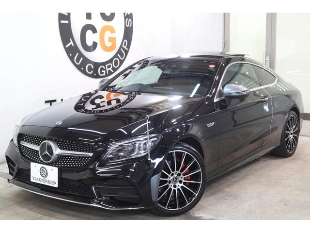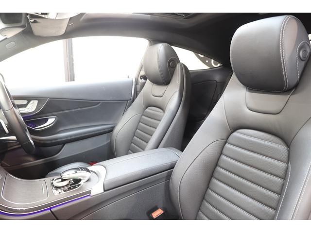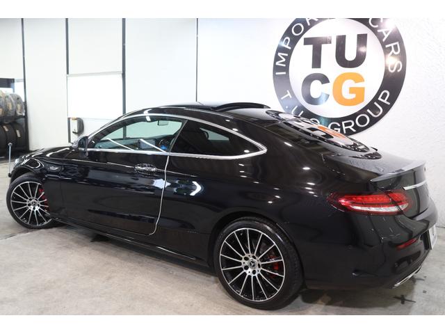 メルセデス・ベンツ CクラスC180クーペ スポーツ レザーEXC&レーダーSP 後期型 MEコネ 黒本革 パノラマSR HUD ナビTV スマホ連携 Bカメラ PTS DSRC エアバランスPKG AMGエアロ&19AW エアサス 9AT 2年保証付