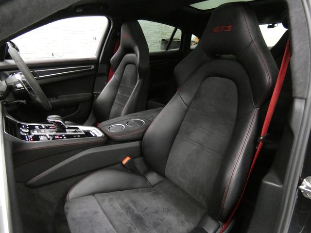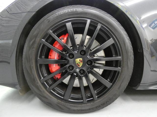GTS専用エクステリアにブラックペイントが施された20インチパナメーラデザインホイールやレッドペイントブレーキキャリパー