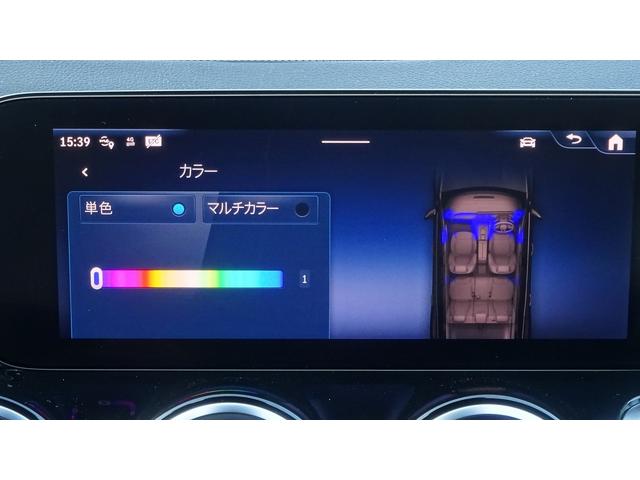 【アンビエントライト】ドア、ダッシュボード、センターコンソールなどの柔らかなLEDの間接光が、室内空間を上質に彩り、ラグジュアリーな雰囲気を醸成します。照明色は64色から選べ、明るさも調整可能。