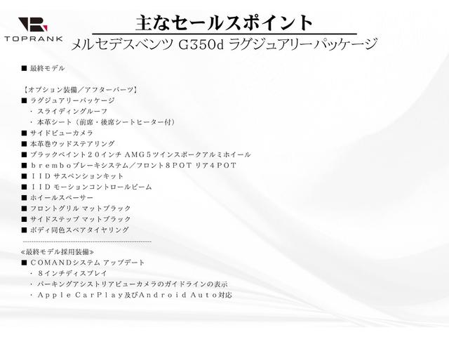 メルセデス・ベンツ GクラスG350d ラグジュアリーPKG 最終モデル AMG20インチAW bremboブレーキ サンルーフ サイドビューカメラ AppleCarPlay