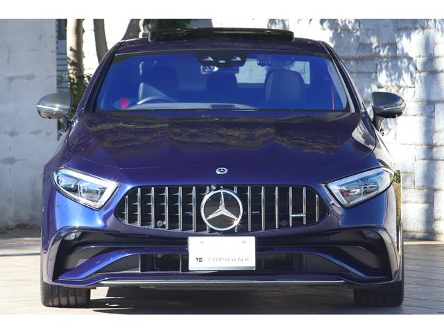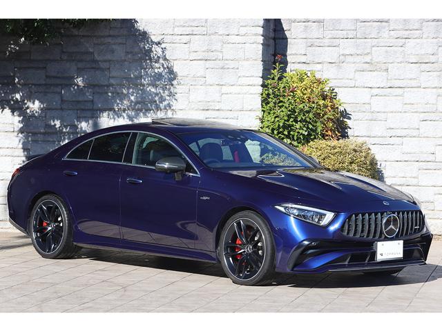 メルセデスAMG CLSクラスCLS53 4マチック+ AMGカーボンPKGM ANUFAKTURミスティックブルー ブラックレザー&レッドステッチ MBUX 後期モデル