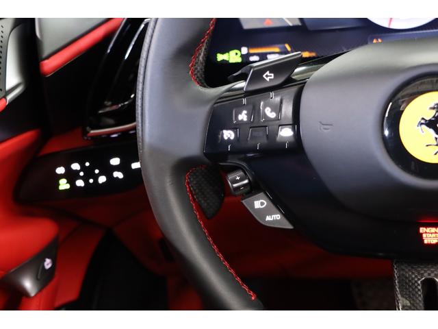 ・カーボンファイバーLEDステアリング・スクーデリアフェラーリシールド・マグネライドデュアルモードサスペンション・フル電動シート・レッドステッチ・ブラックパイピング